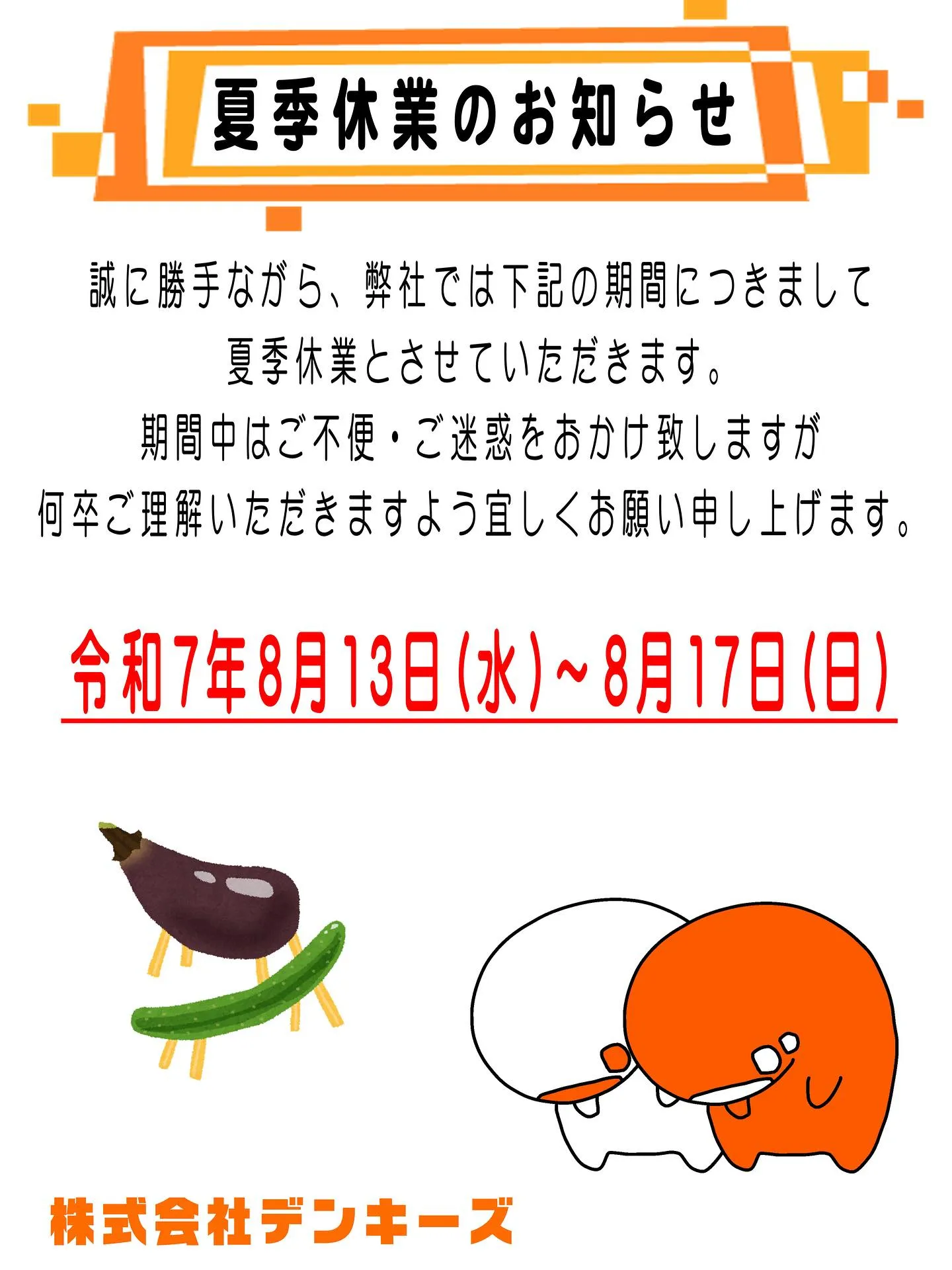 #エアコンも27年問題 #デンキーズ #夏季休業のお知らせ